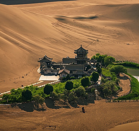 12:30-21:00 午餐后乘车前体验特别赠送敦煌旅拍-多款主题旅拍风格供您选择。在敦煌金色沙海,我们以镜头重绘丝路传奇。汉唐华服与流动沙丘共舞,月牙泉倒映飞天绮影,驼铃斜阳下,您与千年历史共凝不朽史诗。前往【鸣沙山月牙泉景区】(含景区首道门票),暮色中的鸣沙山,驼队如移动的沙丘,清脆的驼铃与风声交织,仿佛穿越千年,与汉家将士的铁骑同频共振。当您奋力攀上沙山之巅,俯瞰月牙泉的粼粼波光,