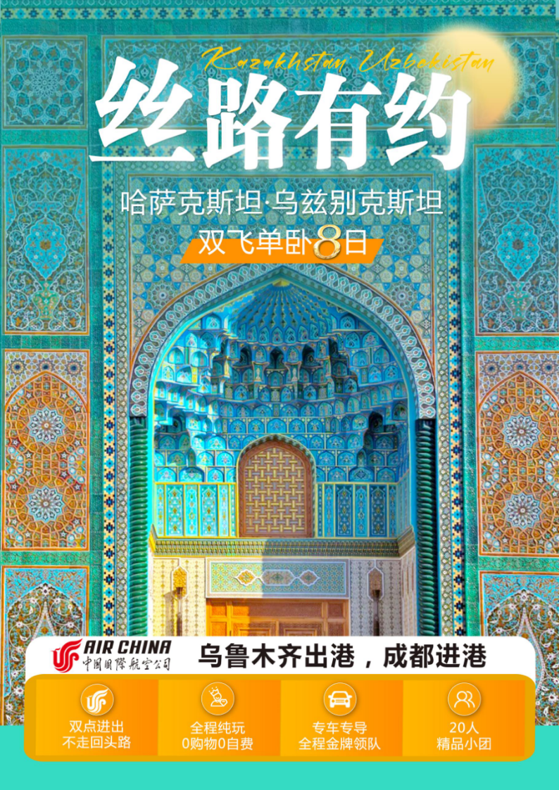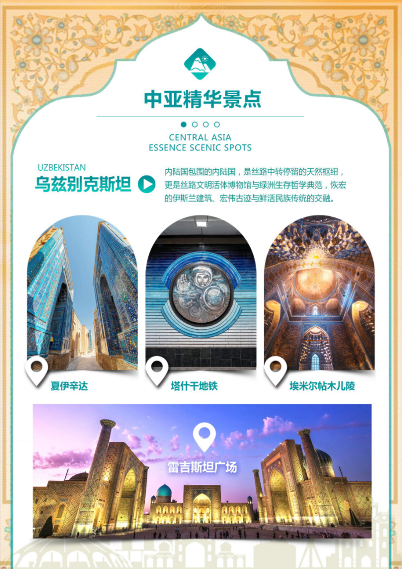 今日主题:前往“丝绸之路心脏”撒马尔罕,领略中亚最辉煌的历史遗迹与建筑艺术。