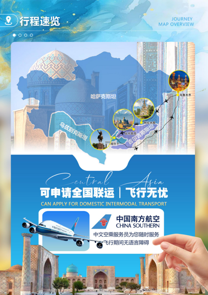 当阿拉木图的峡谷雪山、塔什干的绿荫与撒马尔罕的蓝顶、吉尔吉斯的高山湖泊渐渐化作远行的背景,愿这段中亚之旅留给您的,不止是相机里的风景。