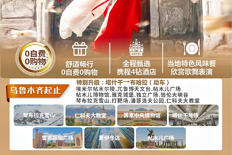 特别安排:升级塔什干→布哈拉(高铁),免除舟车劳顿之苦。